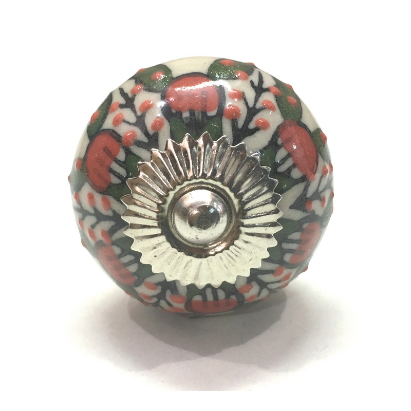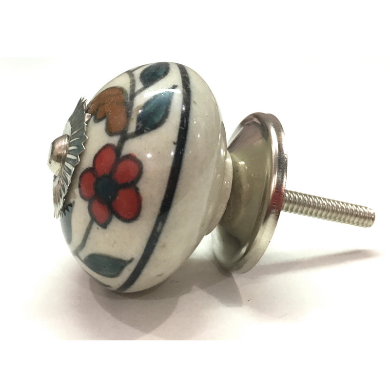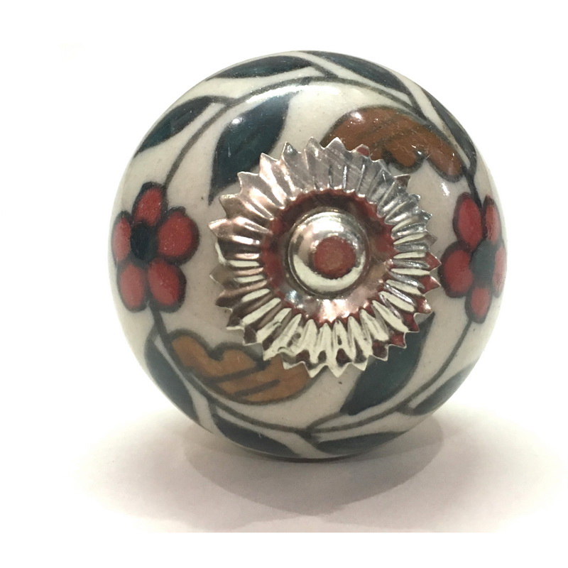 CERAMIC KNOB ROUND LEAF & FLOWER