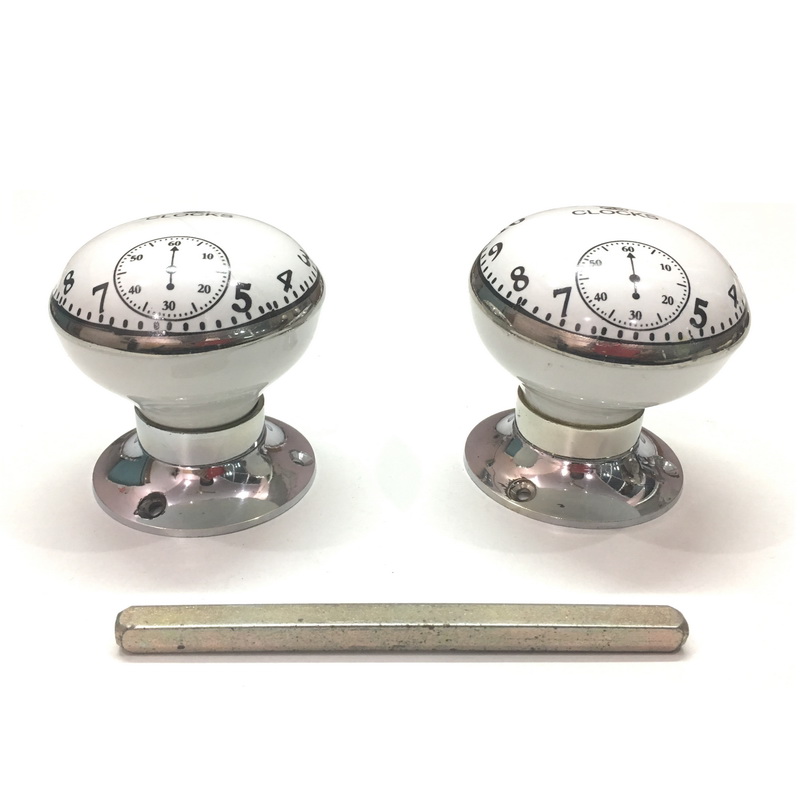 CERAMIC MORTISE DOOR KNOB PARIS CLOCK WITH SILVER BORDER