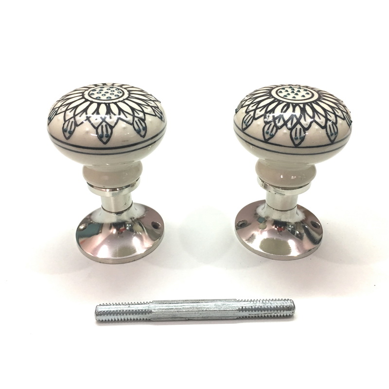 CERAMIC MORTISE DOOR KNOB GREY STARS ON WHITE